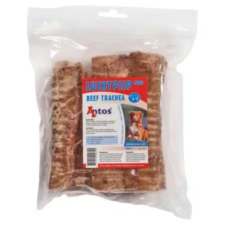 De Antos Runder Luchtpijp is een 100% natuurlijke traktatie, vrij van tarwe, gluten en toegevoegde suikers. Hierdoor kun je je hond met een gerust hart verwennen, wetende dat je hem een puur en voedzaam tussendoortje geeft.