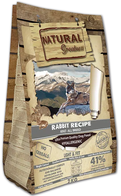 Natural Greatness Rabbit Recipe Light & Fit is een unieke magere, caloriearme “Konijnrecept” kan uw hond gezond en fit houden. Dit heerlijke recept, gemaakt met konijnenvlees van menselijke kwaliteit, vermindert vet en calorieën zonder de voedingsstoffen te verminderen die nodig zijn om een optimale gezondheid te behouden. Een mengsel van natuurlijke vezels uit groenten en fruit helpt uw hond zich vol en tevreden te voelen en vermindert de calorische inname. Verrijkt met glucosamine en chondroïtine, helpt dit recept om het gewrichtskraakbeen gezond te houden. L-Carnitine helpt vet te verbranden en de spiermassa op peil te houden. De samenstelling is ook uitstekend voor oudere honden.