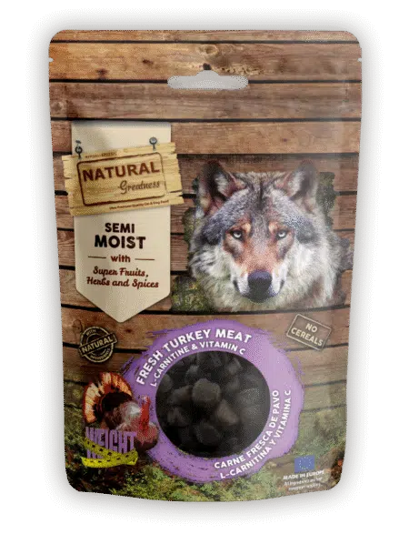 Met Natural Greatness Weight Support Halfvochtige Bits geef je jouw hond een smakelijke beloning zonder schuldgevoel!