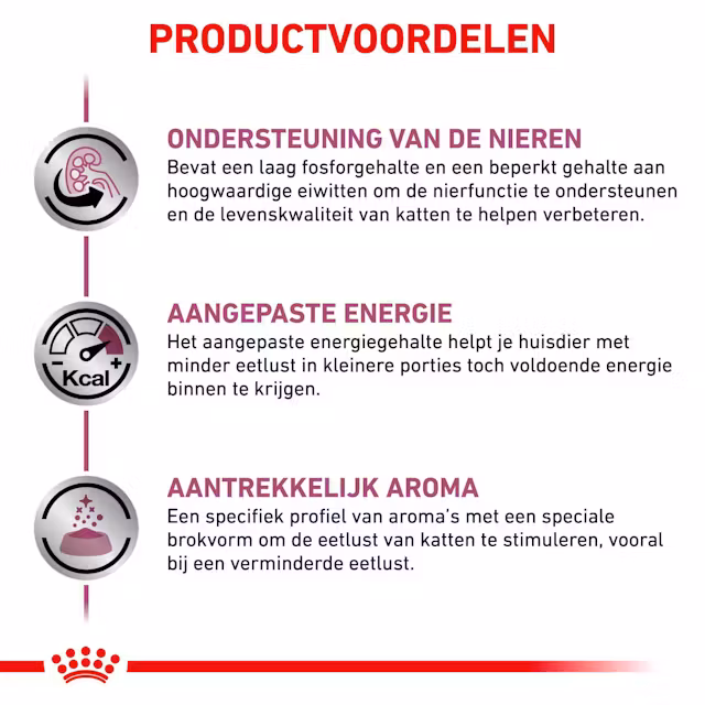 Een nieraandoening kan het dagelijks leven van je kat zwaar maken. Royal Canin Renal Select Dry is speciaal ontwikkeld om de nierfunctie te ondersteunen en het eetplezier terug te brengen. De brokjes hebben een unieke textuur en geur die zelfs katten met minder eetlust verleiden om te eten. Zo krijgt je kat toch de juiste voedingsstoffen binnen om zich beter te voelen.
