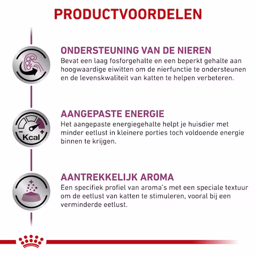 • Ondersteunt de nierfunctie: aangepast fosfor- en eiwitgehalte
