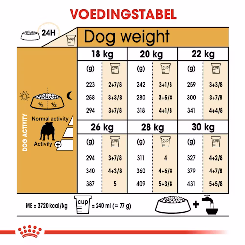 De English Bulldog is compact, krachtig en heerlijk eigenwijs. 🐶 Royal Canin English Bulldog Adult Dry is speciaal afgestemd op de unieke lichaamsbouw en gevoeligheden van dit ras. Deze voeding ondersteunt spijsvertering, huid & plooien, gewrichten en helpt typische problemen zoals gasvorming beperken. De aangepaste brokvorm is ontworpen voor de korte snuit, zodat eten makkelijker én rustiger verloopt.
