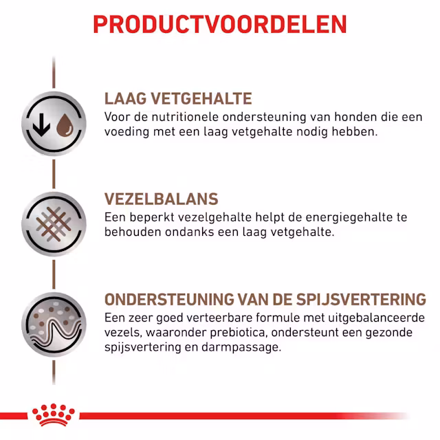 Sommige honden hebben een gevoelige spijsvertering die vet gewoon niet goed verdraagt. 🐶 Royal Canin Gastro Intestinal Low Fat Dry is speciaal ontwikkeld voor honden die baat hebben bij een vetarm dieet, zoals bij spijsverteringsproblemen, pancreatitis of vetintolerantie. De licht verteerbare formule ondersteunt de darmen, terwijl essentiële voedingsstoffen zorgen dat je hond toch alles binnenkrijgt wat hij nodig heeft.